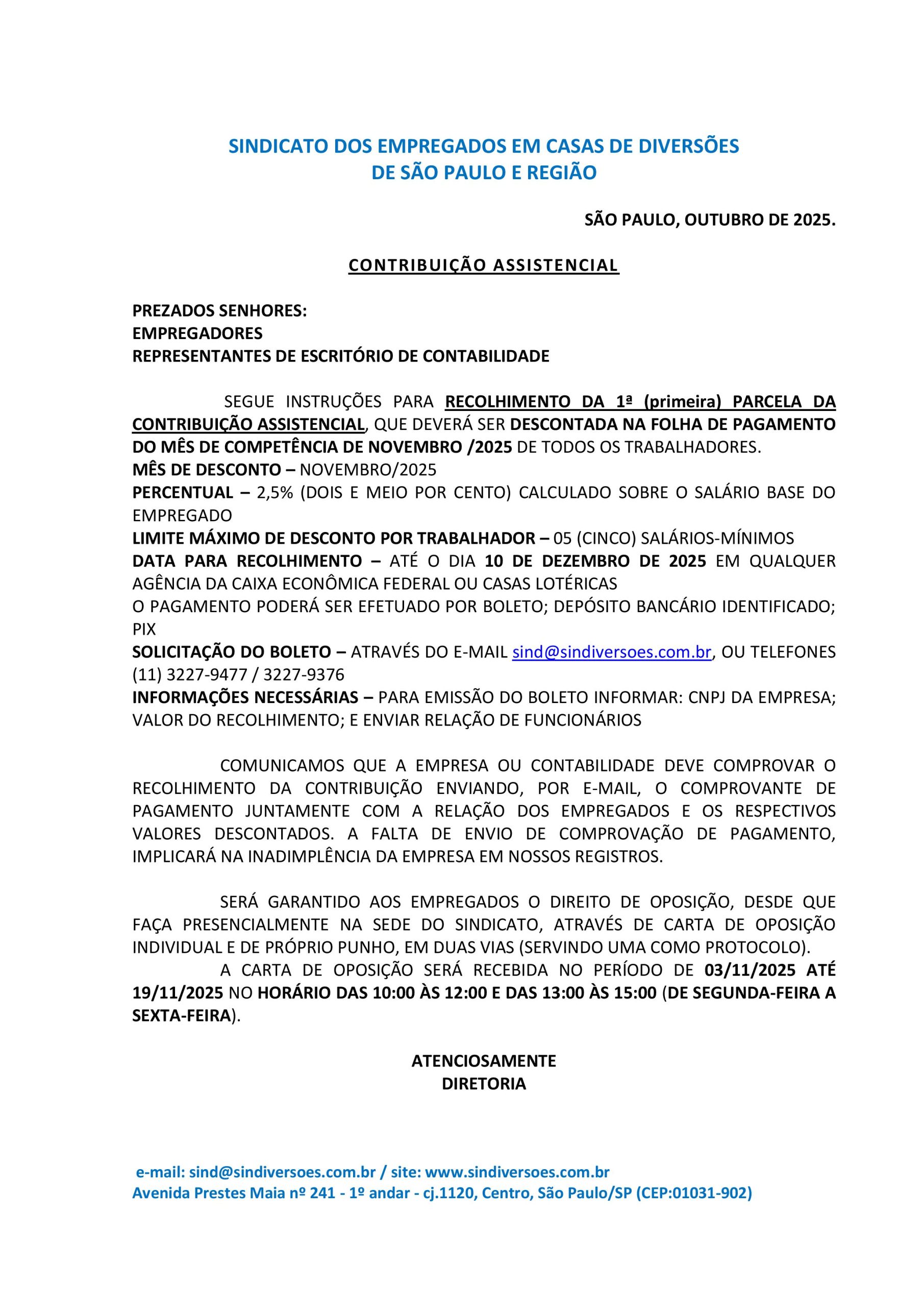 Há 65 anos em defesa dos Trabalhadores em Casas de Diversões de São Paulo e Região!